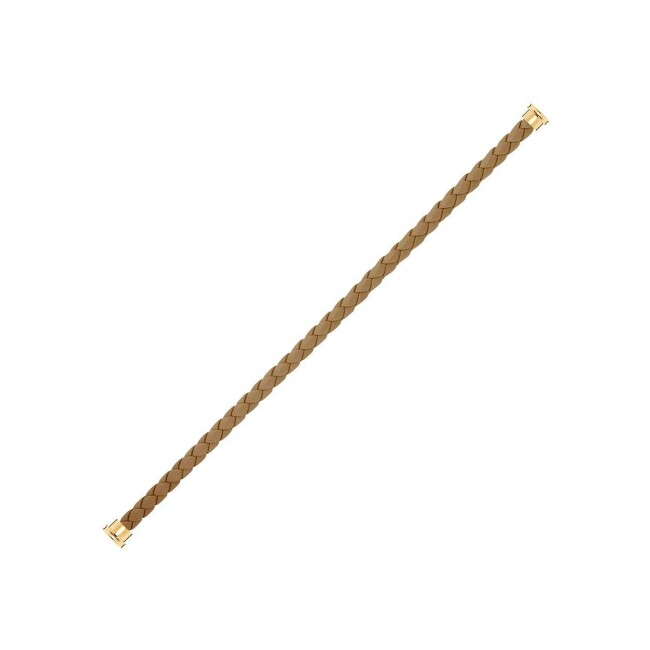 FRED interchangeable cable, large model, braided khaki leather cable, yellow gold-plated steel end caps