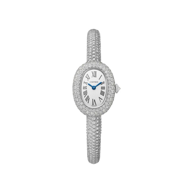 Baignoire watch, Mini model, size 15, quartz movement, white gold, diamonds