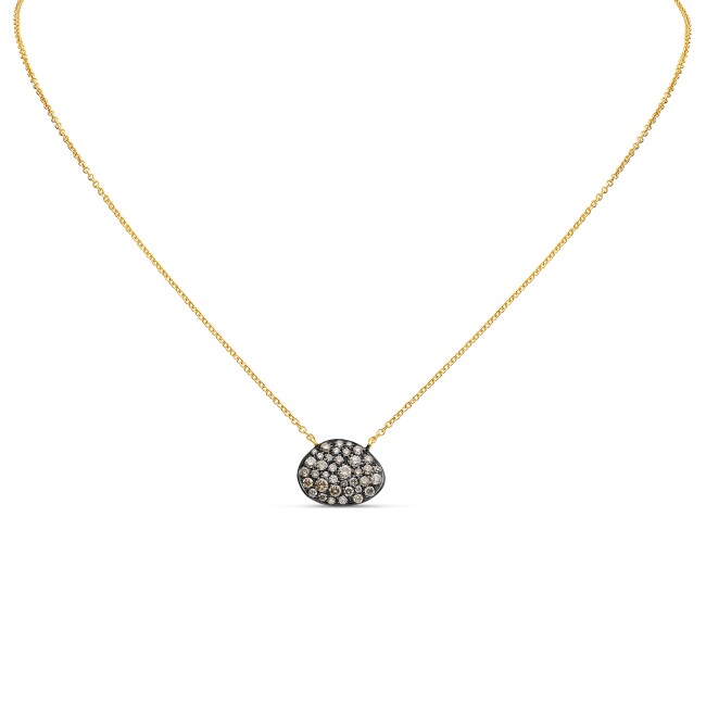 Collier Raynal Galet Or rose, pavage de diamants bruns