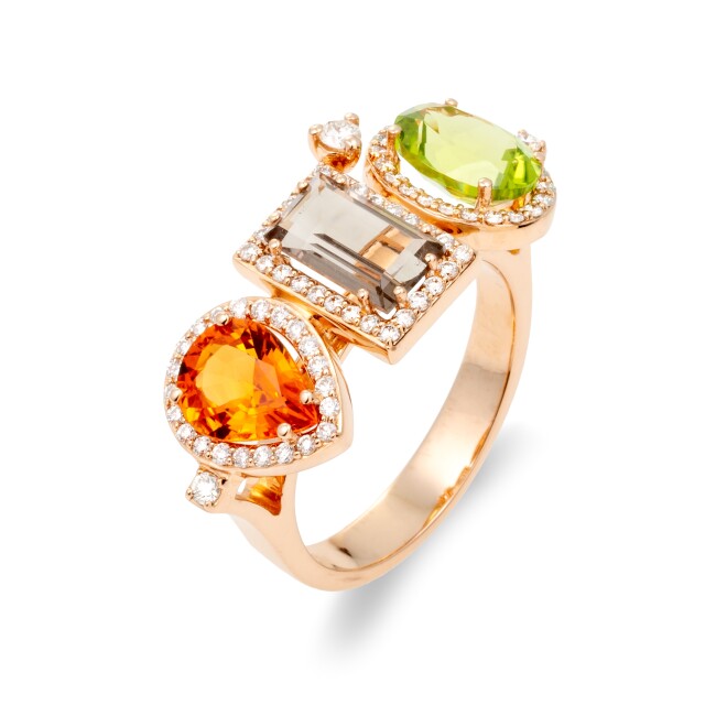 Bague Icone or rose saphir, topaze diamants