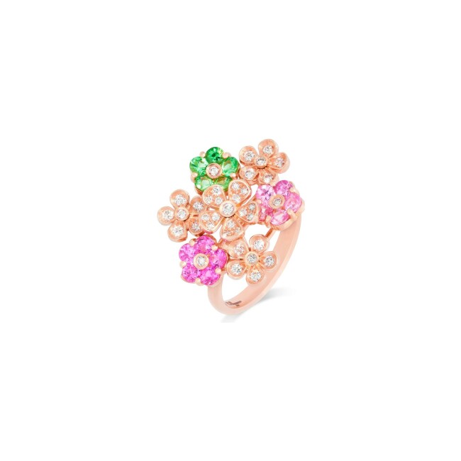 Cesare Pompanon Primavera trembleuse Ring, pink gold, diamond, tsavorite and pink sapphir, small