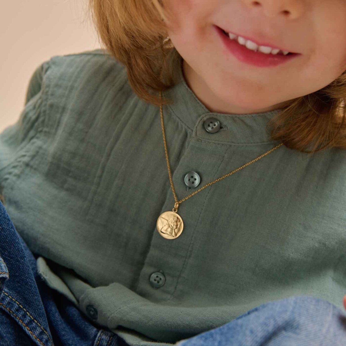 Arthus Bertrand Raphael's angel medal, 18mm, polished yellow gold