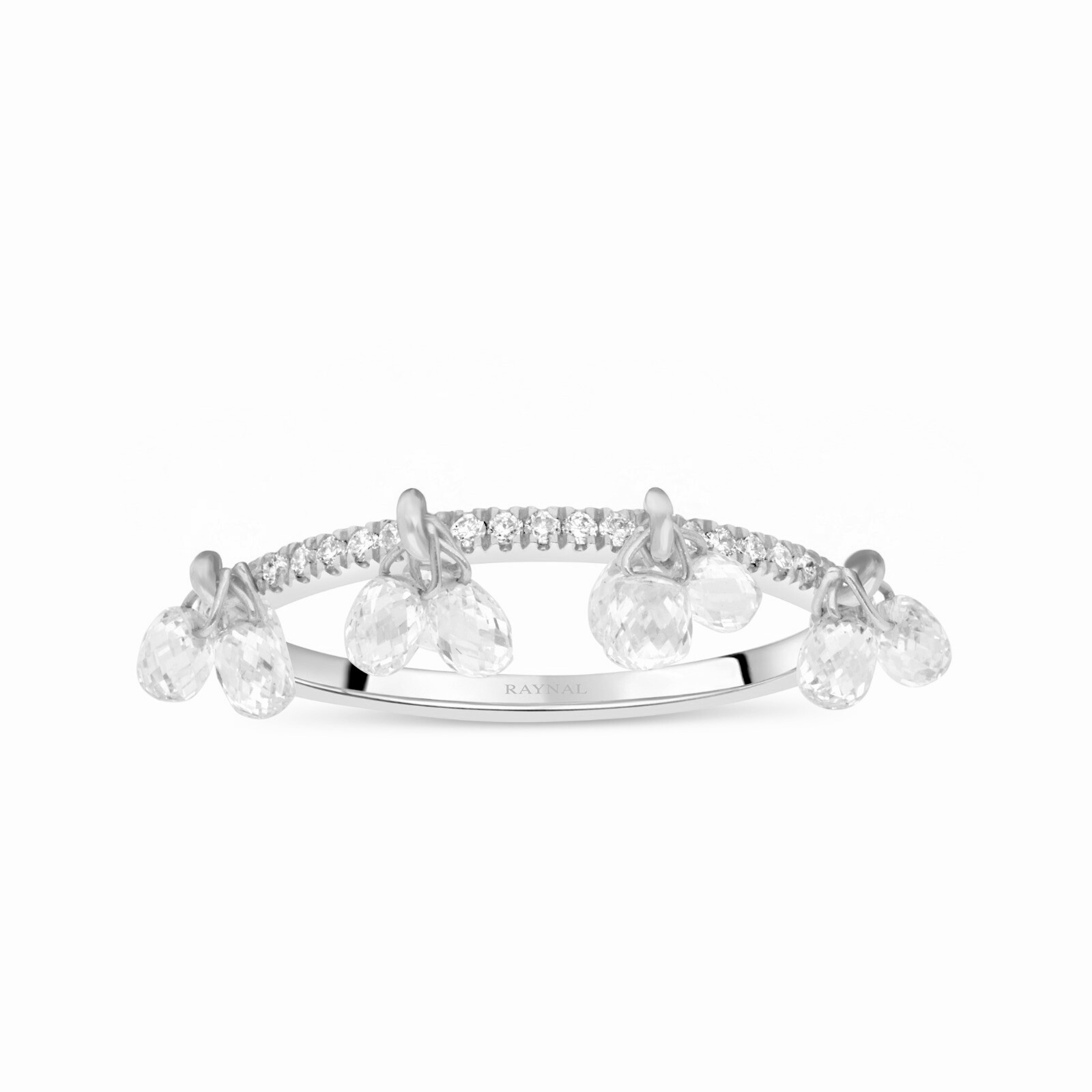 Like a shimmering cloud delicately suspended on the finger, the Nuée Précieuse ring captures the airy elegance and poetry of a jewel in motion. Crafted in 18k white gold, its fine setting holds a cascade of briolette-cut diamonds, gracefully dangling like drops of light.