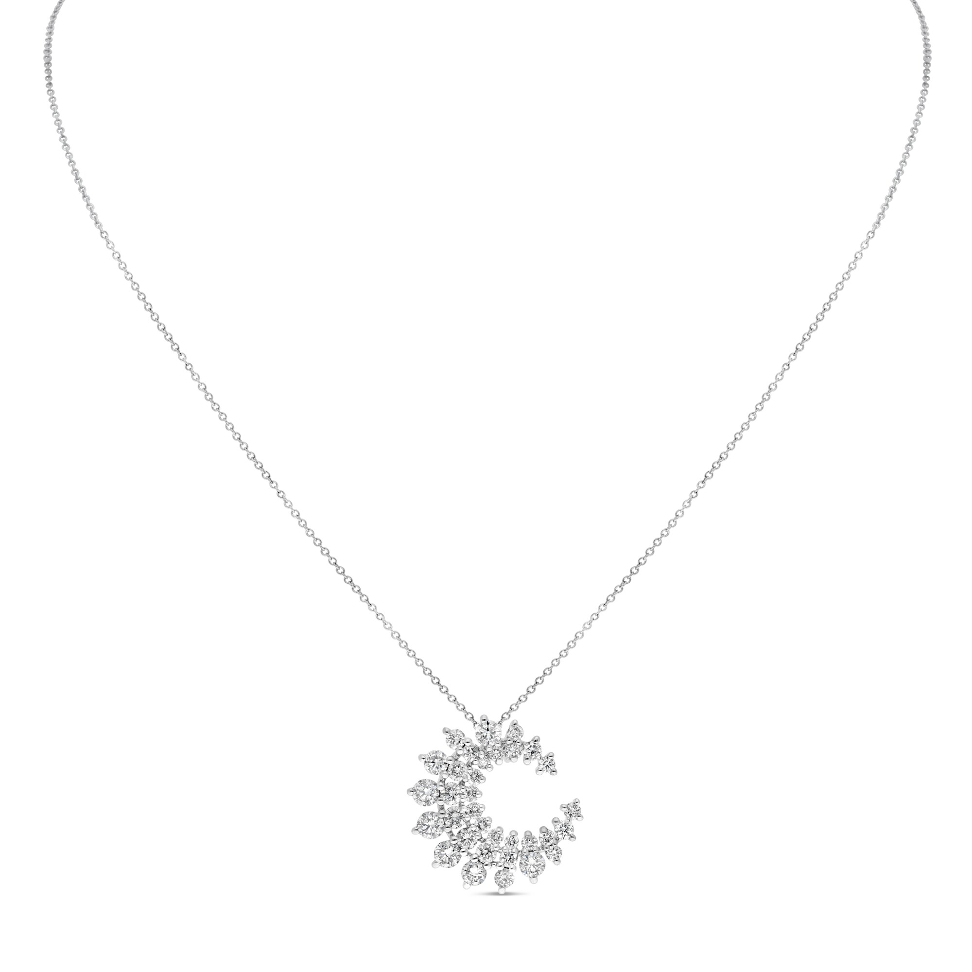 Crafted in 18K white gold, the Moonlight Radiance pendant by Karima Raynal captures the ethereal beauty of a crescent moon bathed in starlight. Set with a harmonious array of brilliant-cut and pear-shaped diamonds, each stone is meticulously hand-set to form a luminous arc, evoking the celestial glow of moonbeams dancing in the night sky. This delicate interplay of shapes enhances the pendant's brilliance, reflecting the refined craftsmanship for which Maison Raynal is renowned.