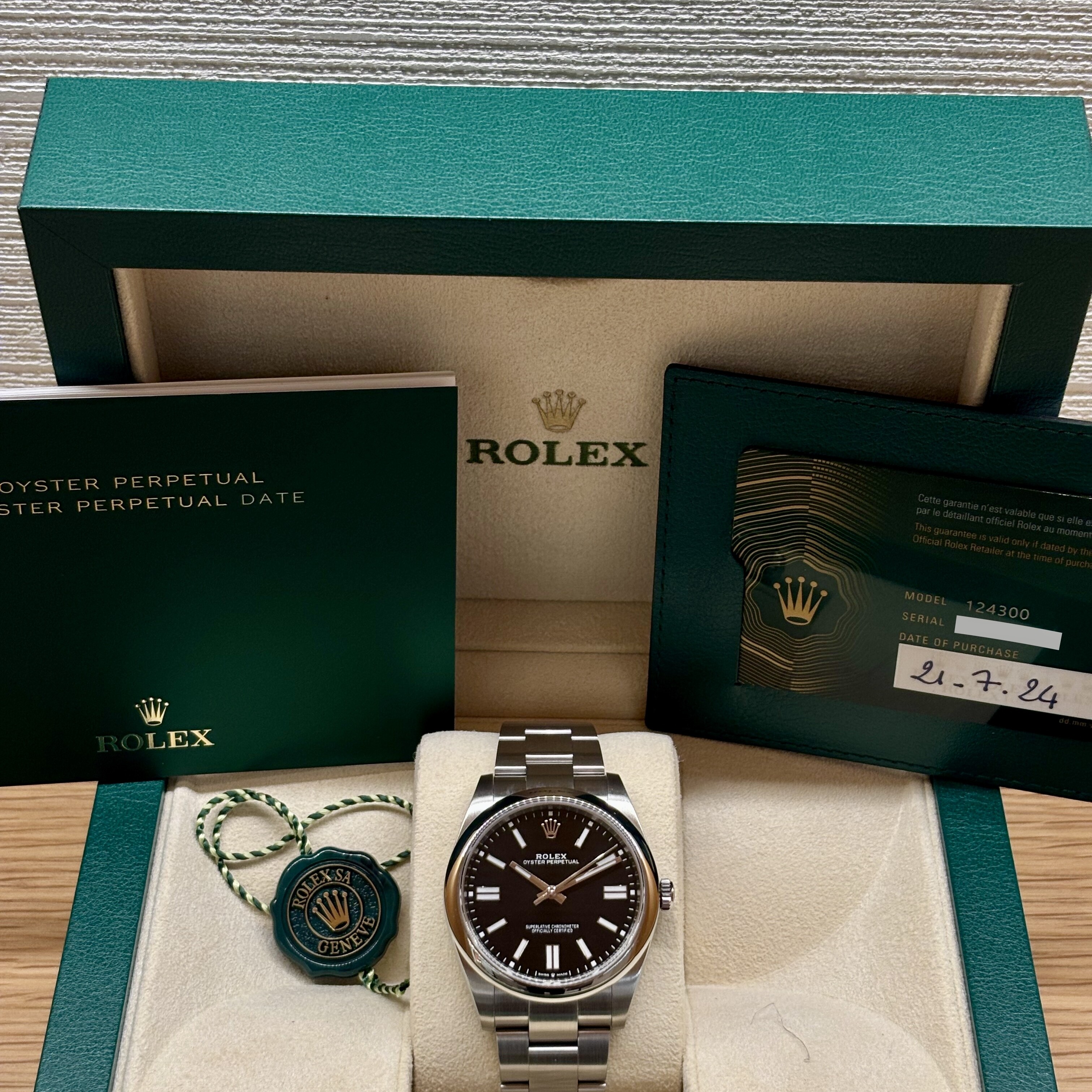 Rolex Oyster Perpetual 41 – Réf. 124300 – Acier – Cadran Noir – Lunette Lisse – Full Set - 2024