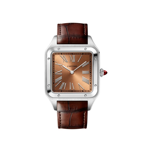 Santos-Dumont watch, Extra-large model, manual mechanical movement, platinum, leather
