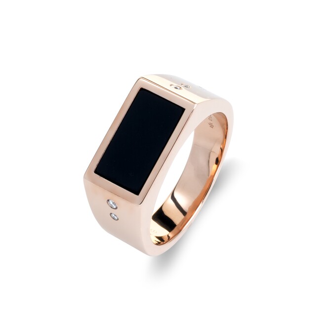 Bague Chevalière Sceau Noir or rose diamants onyx