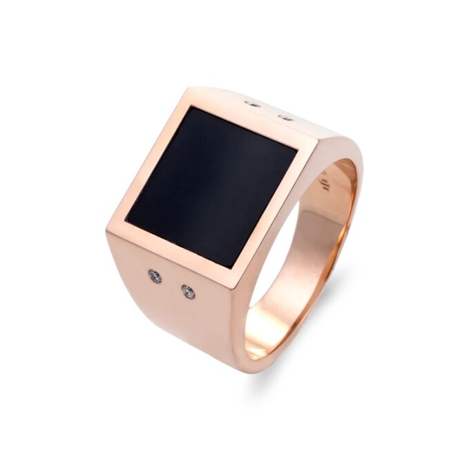 Bague Chevalière Raynal en or rose diamants et Onyx