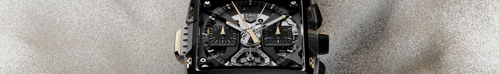 Pour ponctuer cette architecture très technique, TAG Heuer a intégré des touches d’or jaune 2N. On les retrouve notamment sur le poussoir de rattrapante et certaines parties de la structure.
