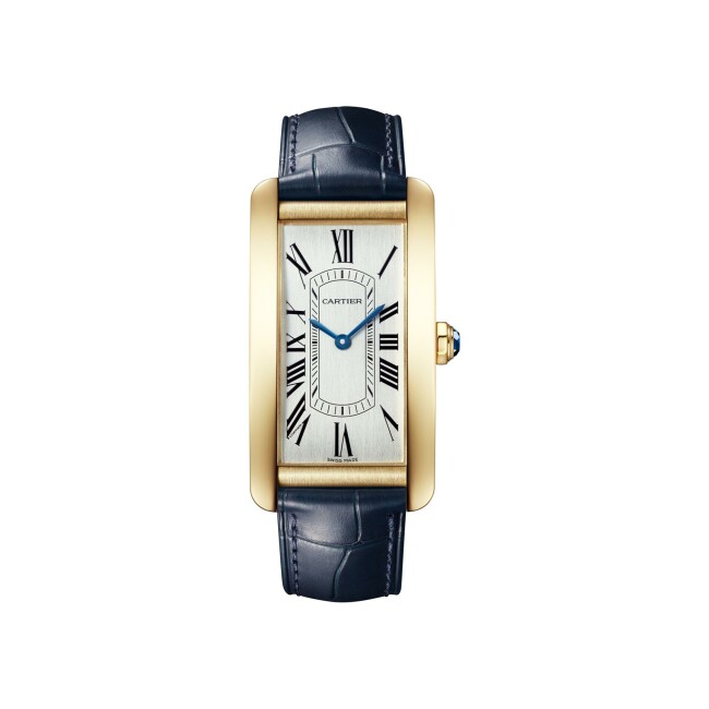 Montre Tank Américaine de Cartier Grand modèle, mouvement automatique, or jaune, cuir