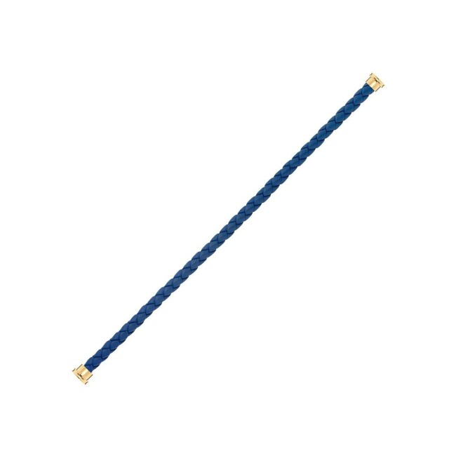 Câble FRED interchangeable Grand Modèle en cuir bleu tressé, embouts acier plaqué or jaune