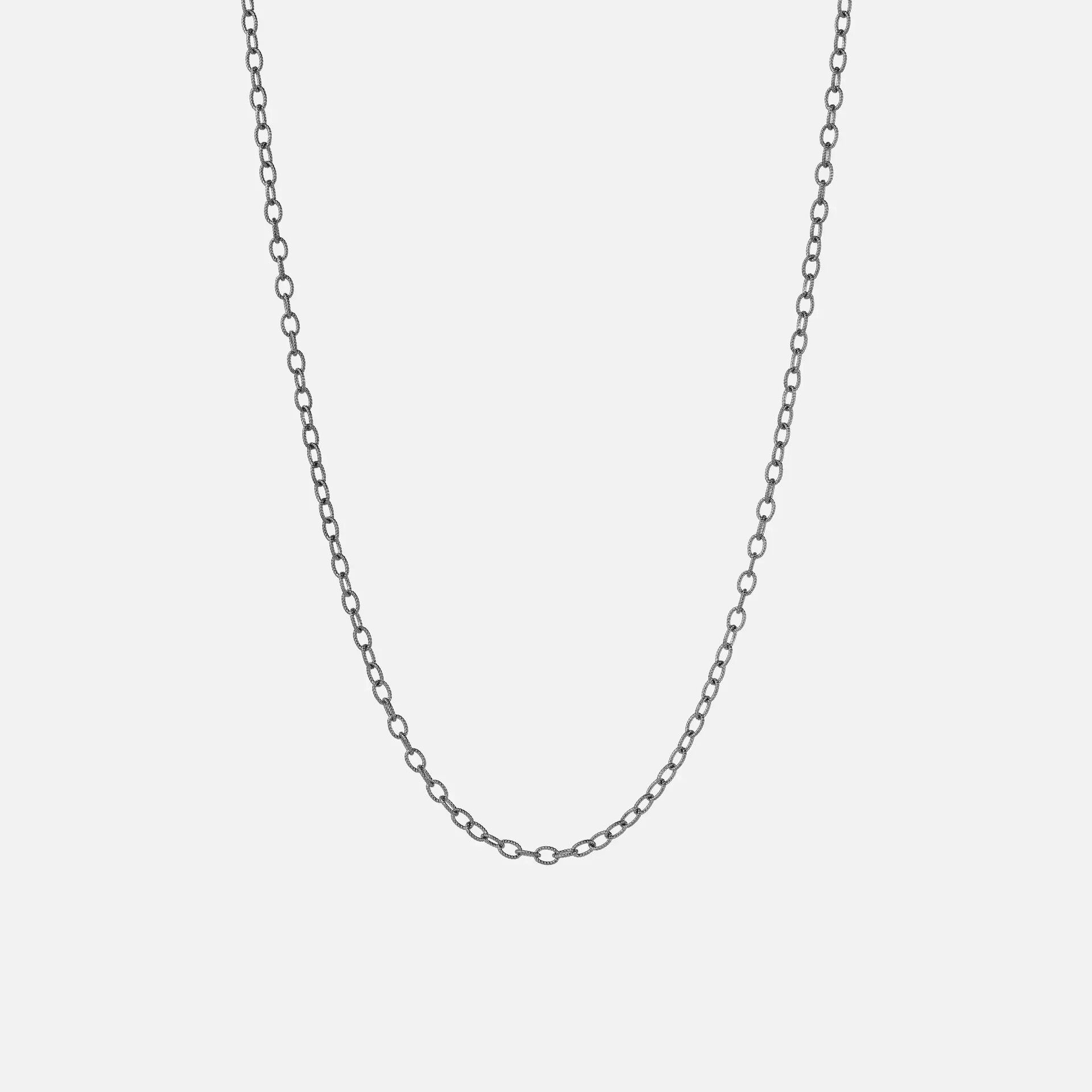 Réalisé en argent sterling oxydé, le collier se distingue par sa chaîne ancre torsadée, à l’apparence sculpturale et texturée. Sa finition satinée à la main témoigne d’un savoir-faire artisanal d’exception, où chaque détail est soigneusement travaillé pour offrir un bijou à la fois singulier et intemporel.