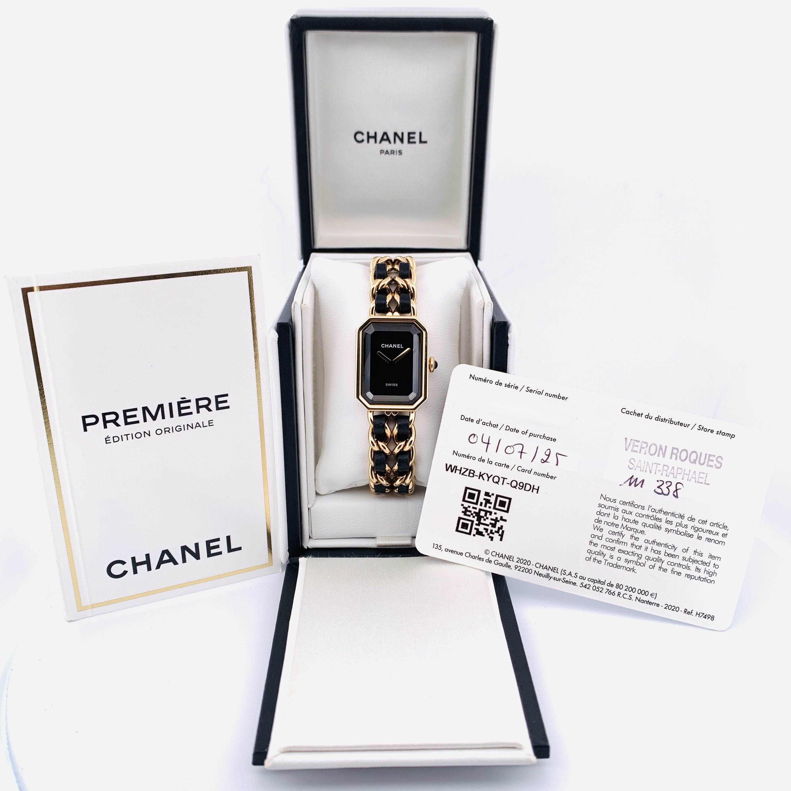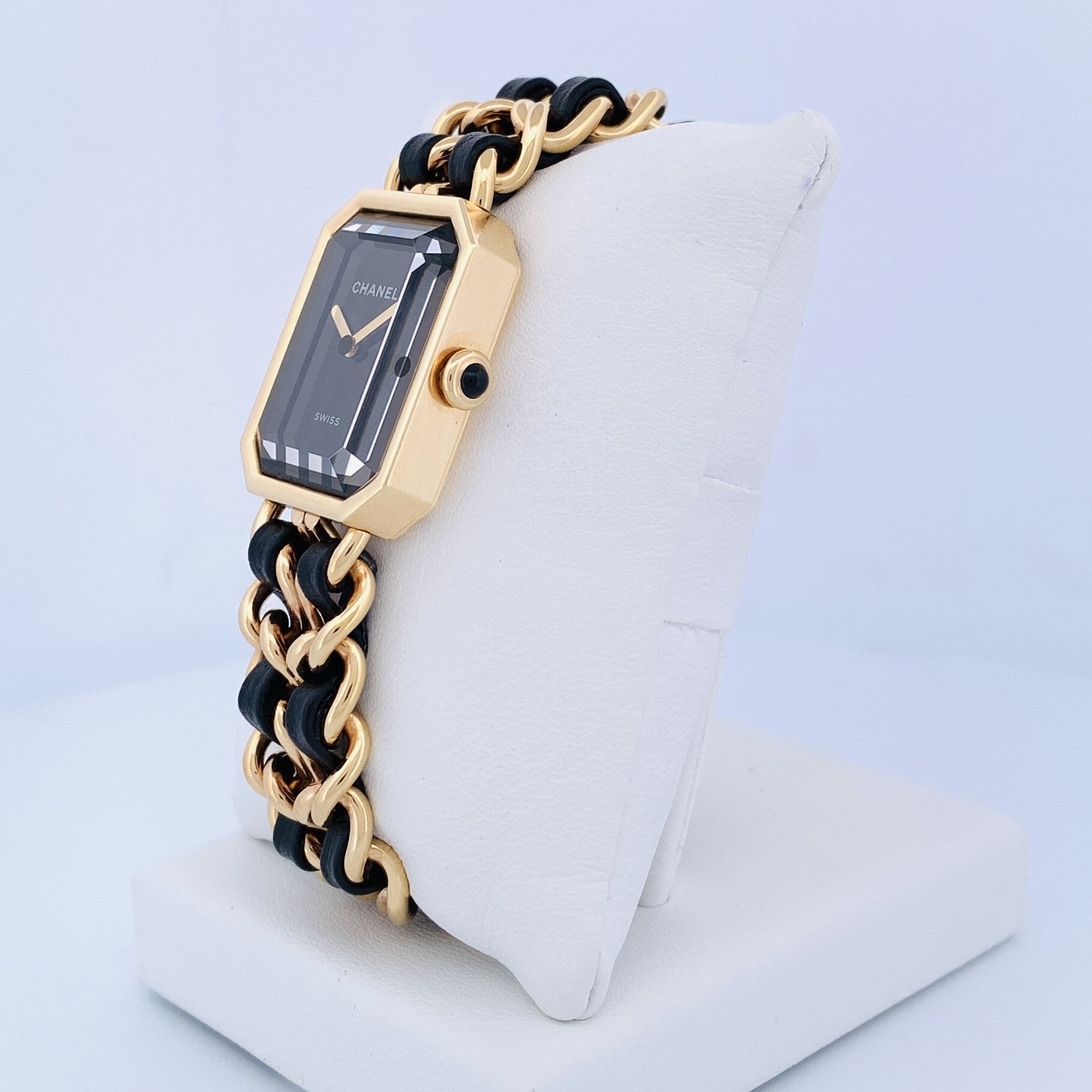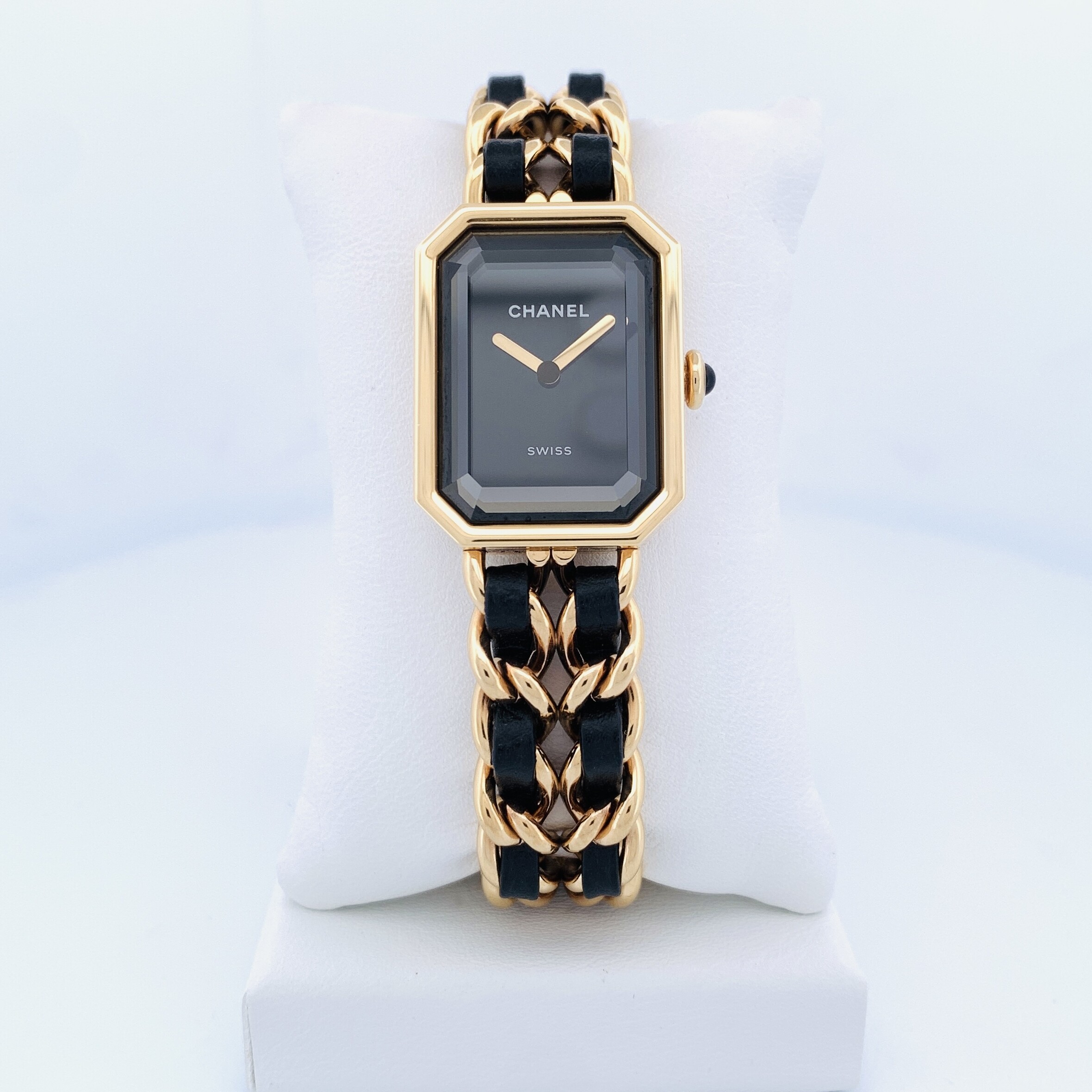Chanel PREMIÈRE ÉDITION ORIGINALE– Or Jaune – Cadran Noir – Bracelet Chaîne & Cuir Noir