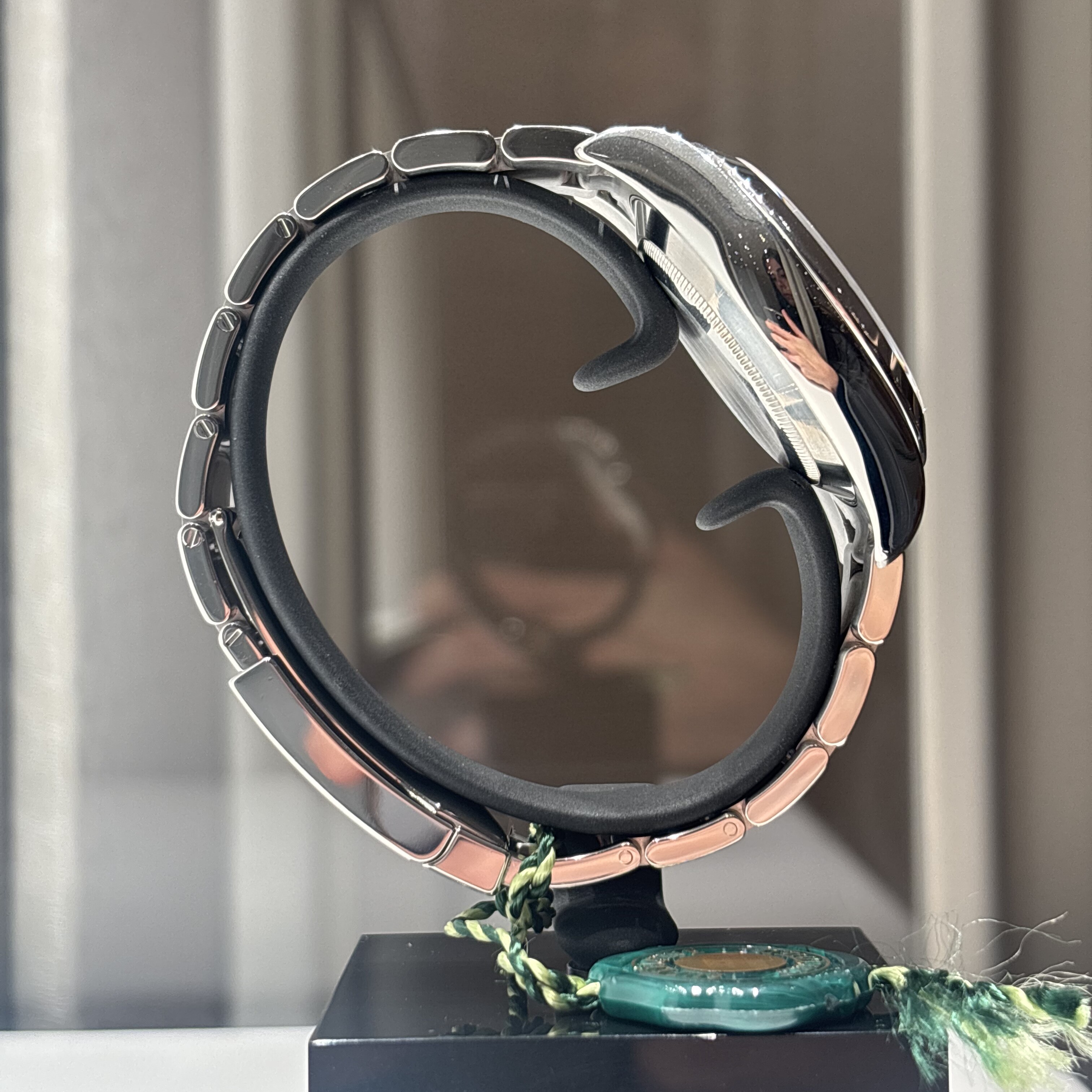 Relancée en 2016, cette version de l’Air-King affirme une identité forte et moderne, avec un design directement issu du partenariat de Rolex avec l’aviation et le projet Bloodhound SSC.