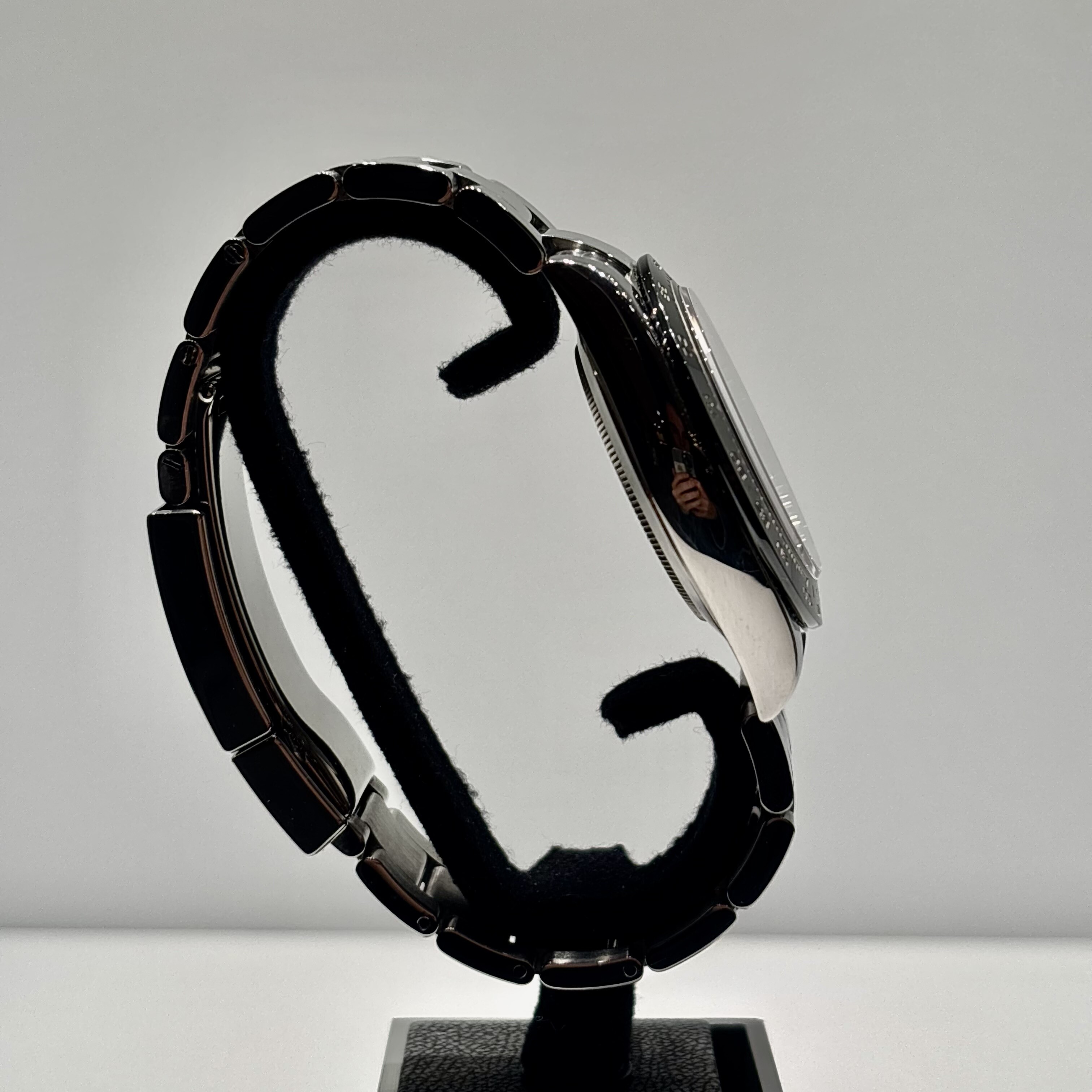 Superbe Rolex Daytona, référence 116500LN, dans sa configuration extrêmement convoitée avec cadran noir et lunette en céramique Cerachrom. Ce modèle iconique, introduit en 2016, est l’un des plus recherchés de la gamme Rolex grâce à son esthétique sportive, sa précision et son mouvement haute performance.