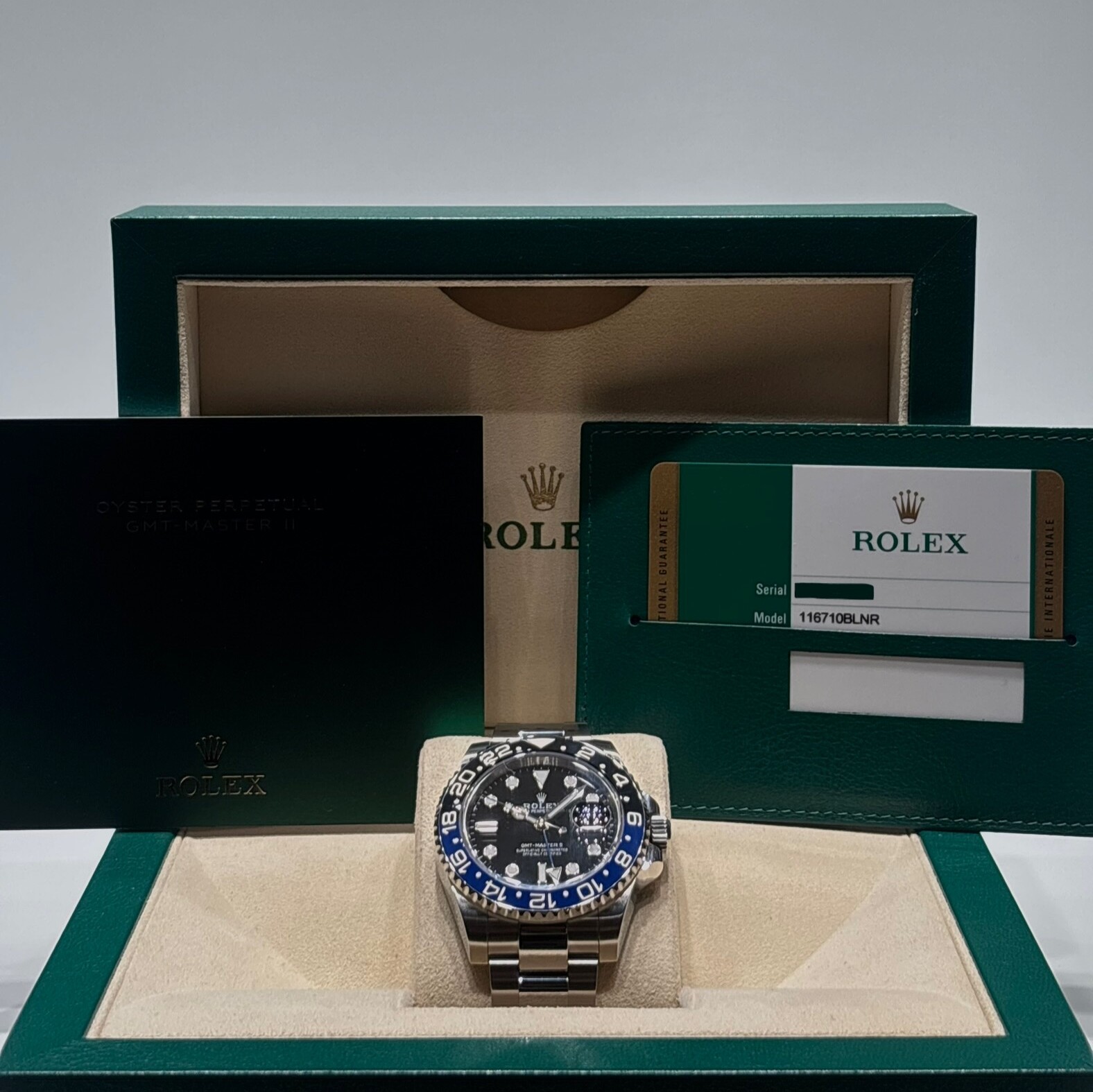 Présentée en 2013, cette version fut la première GMT-Master II à arborer cette combinaison de couleurs unique, inspirée du ciel nocturne et rapidement devenue un modèle iconique de la marque.