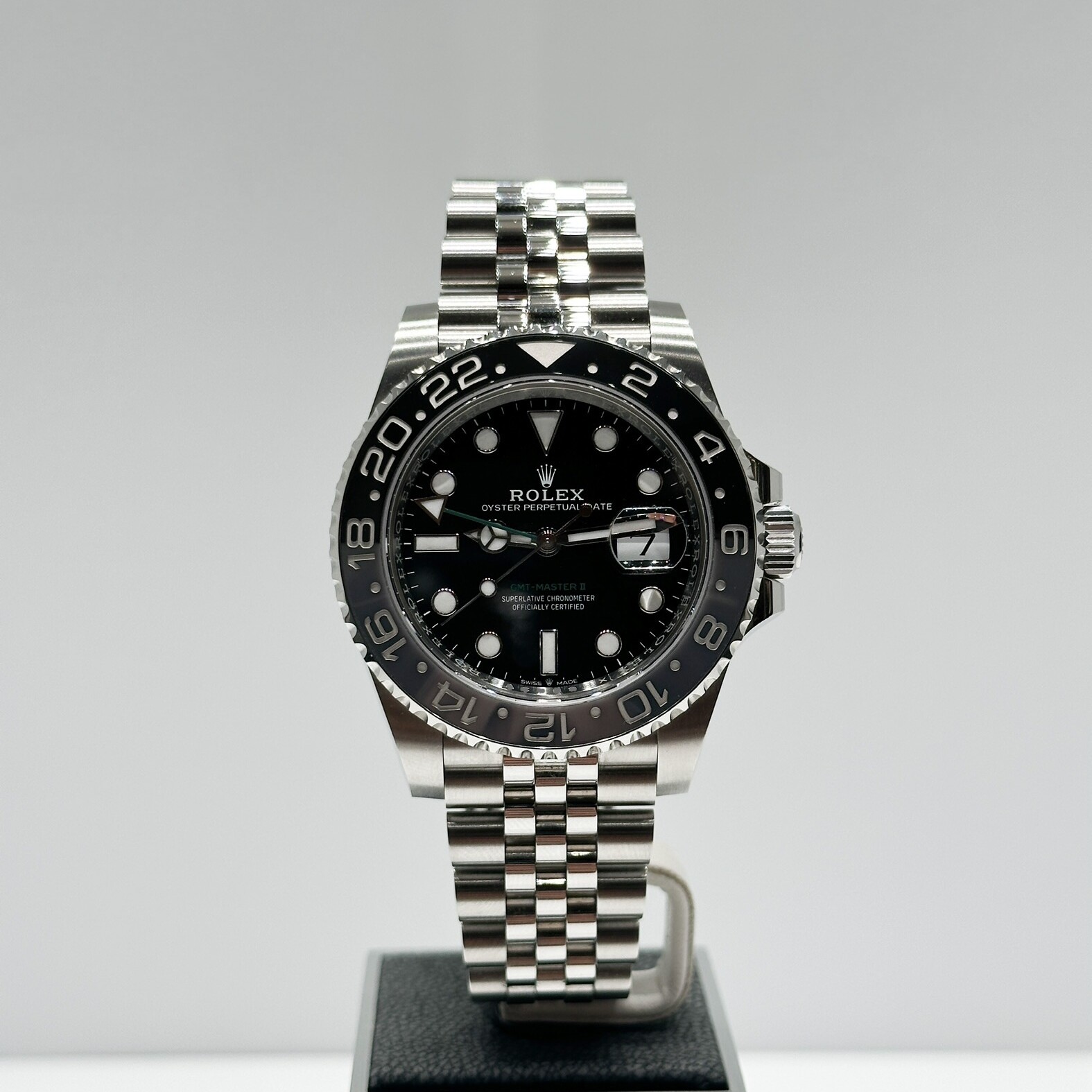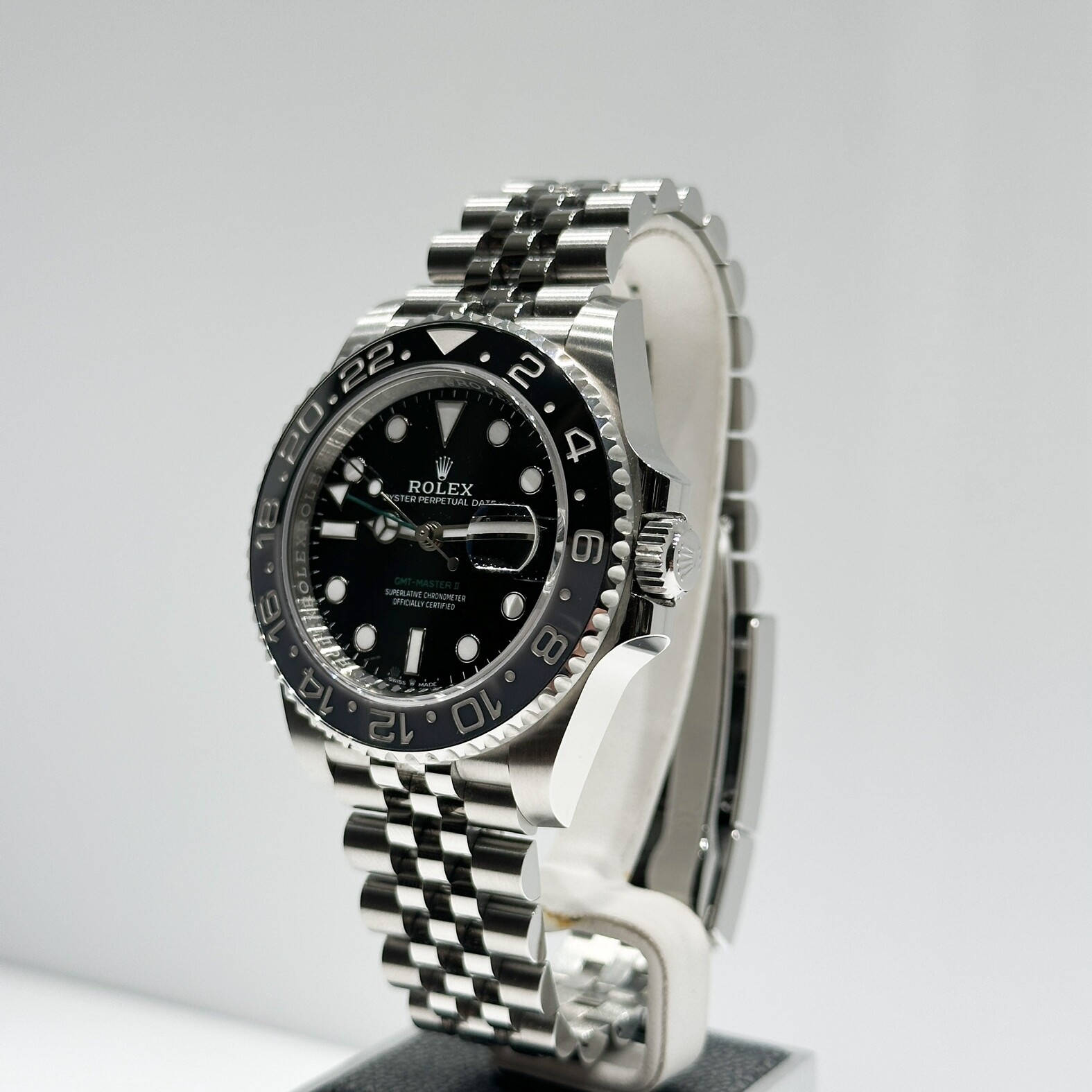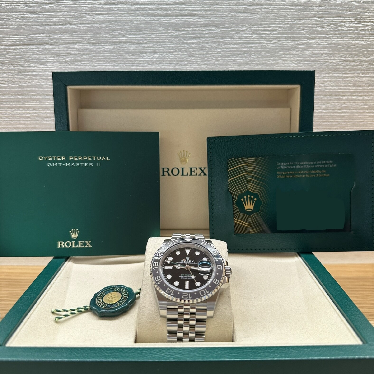 Superbe Rolex GMT-Master II « Bruce Wayne », référence 126710GRNR, dans sa configuration emblématique avec lunette céramique noire et grise Cerachrom et bracelet Jubilé. Ce modèle iconique, très recherché depuis sa présentation en 2023, séduit par son esthétique moderne et son parfait équilibre entre technicité, sportivité et élégance.