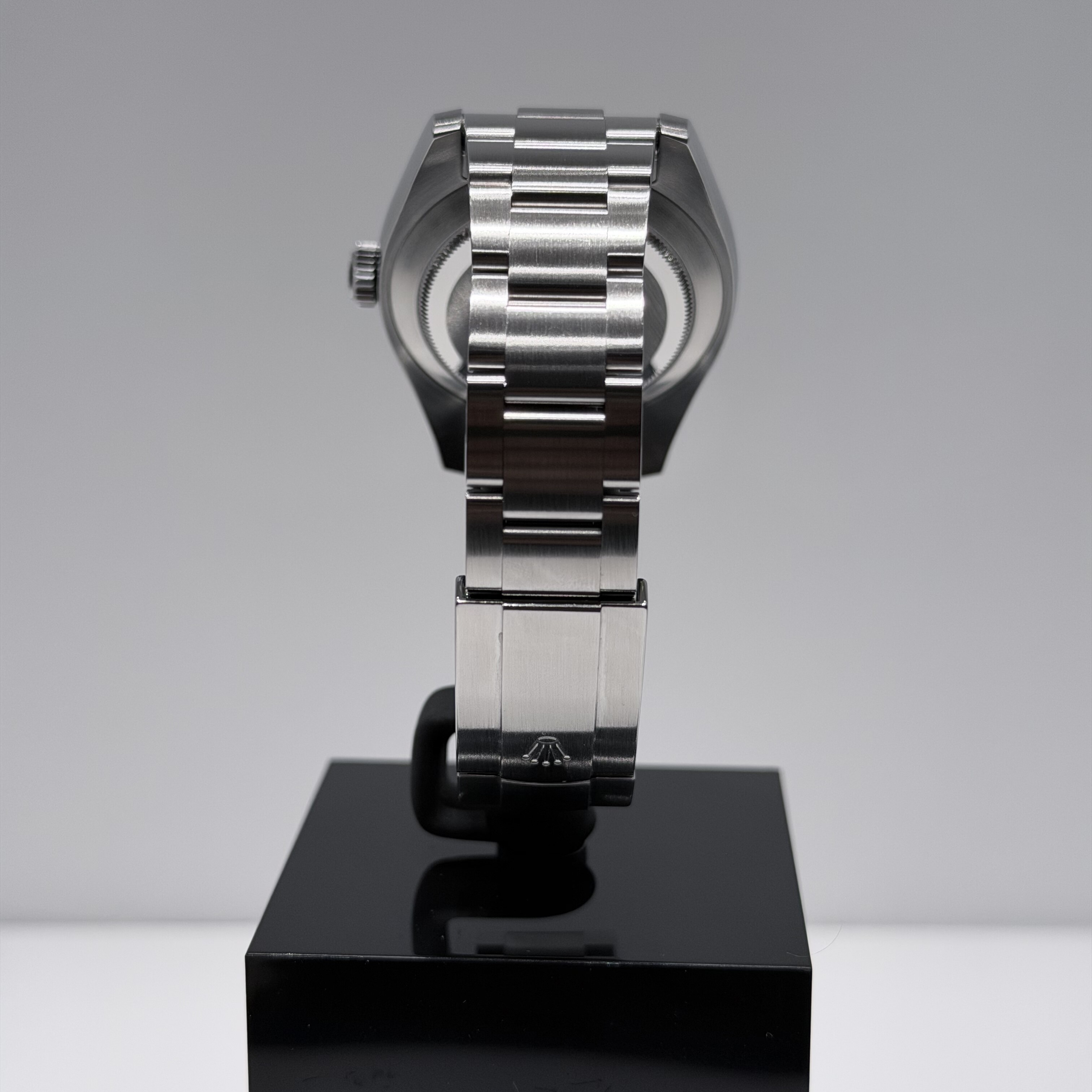 Son boîtier Oyster de 40 mm en acier Oystersteel assure robustesse et confort au quotidien. Le cadran se démarque par l’association d’index luminescents Chromalight, d’une aiguille des secondes verte et du logo Rolex jaune, offrant une identité visuelle forte et immédiatement reconnaissable.
