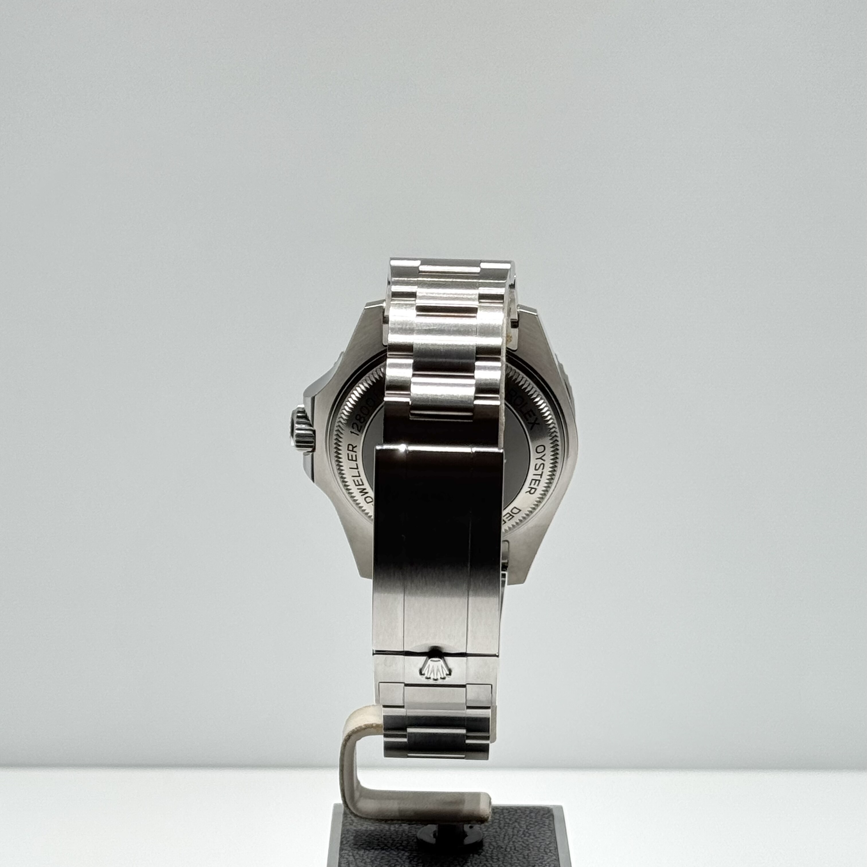 Dotée d’un boîtier Oyster de 44 mm en acier Oystersteel et du système Ringlock, cette Deepsea offre une étanchéité exceptionnelle jusqu’à 3 900 mètres. Sa lunette tournante unidirectionnelle en céramique Cerachrom noire garantit une lisibilité et une durabilité maximales.